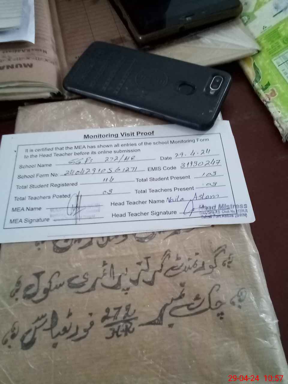 | EMIS Code: 31130247 | Name of School: GGPS CHAK NO 272 HR | |||