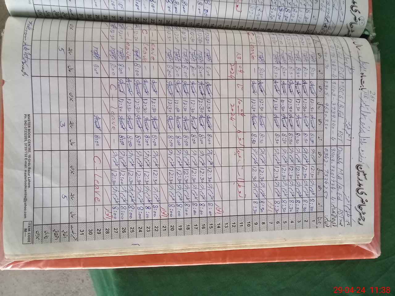 | CNIC | Full Name | Designation | R/C | Absence During Last Calender Month |