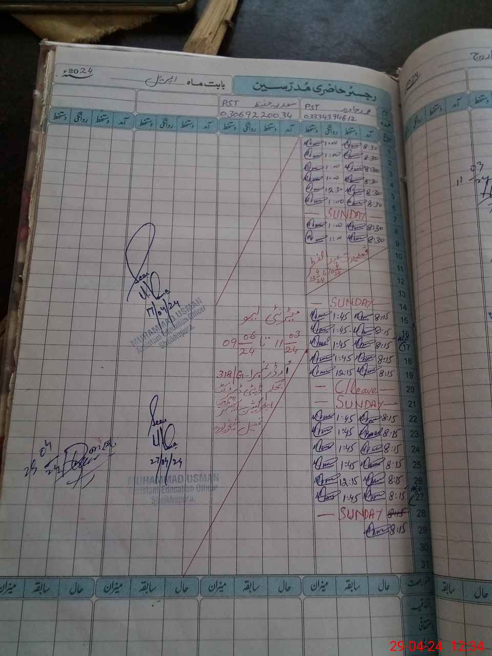 | Name: MU**** JA**** Designation: (School Headmaster's/Headmistress's) PST Phone/Cell Number: 03**** |