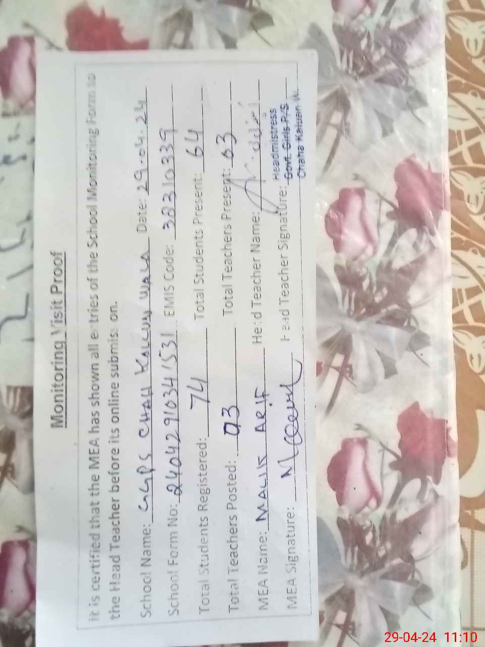 | EMIS Code: 38310339 | Name of School: GGPS CHAH KALLUAN WALA | |||