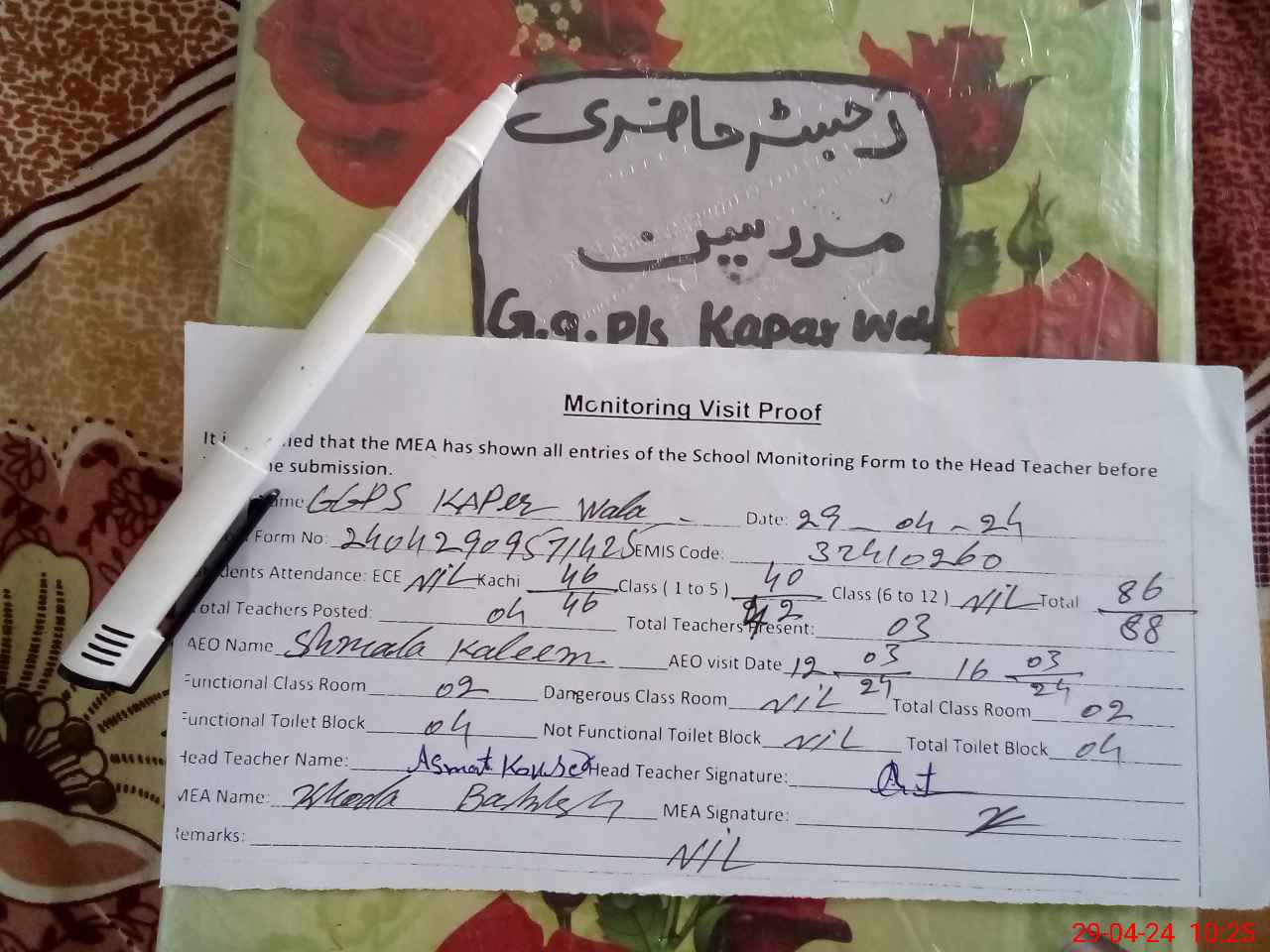 | EMIS Code: 32410260 | Name of School: GGPS KAPER WALA | |||