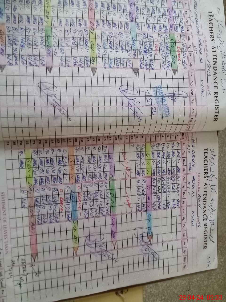 | Leave | Duty | Absent | Maternity | Medical | Ex- Pak |