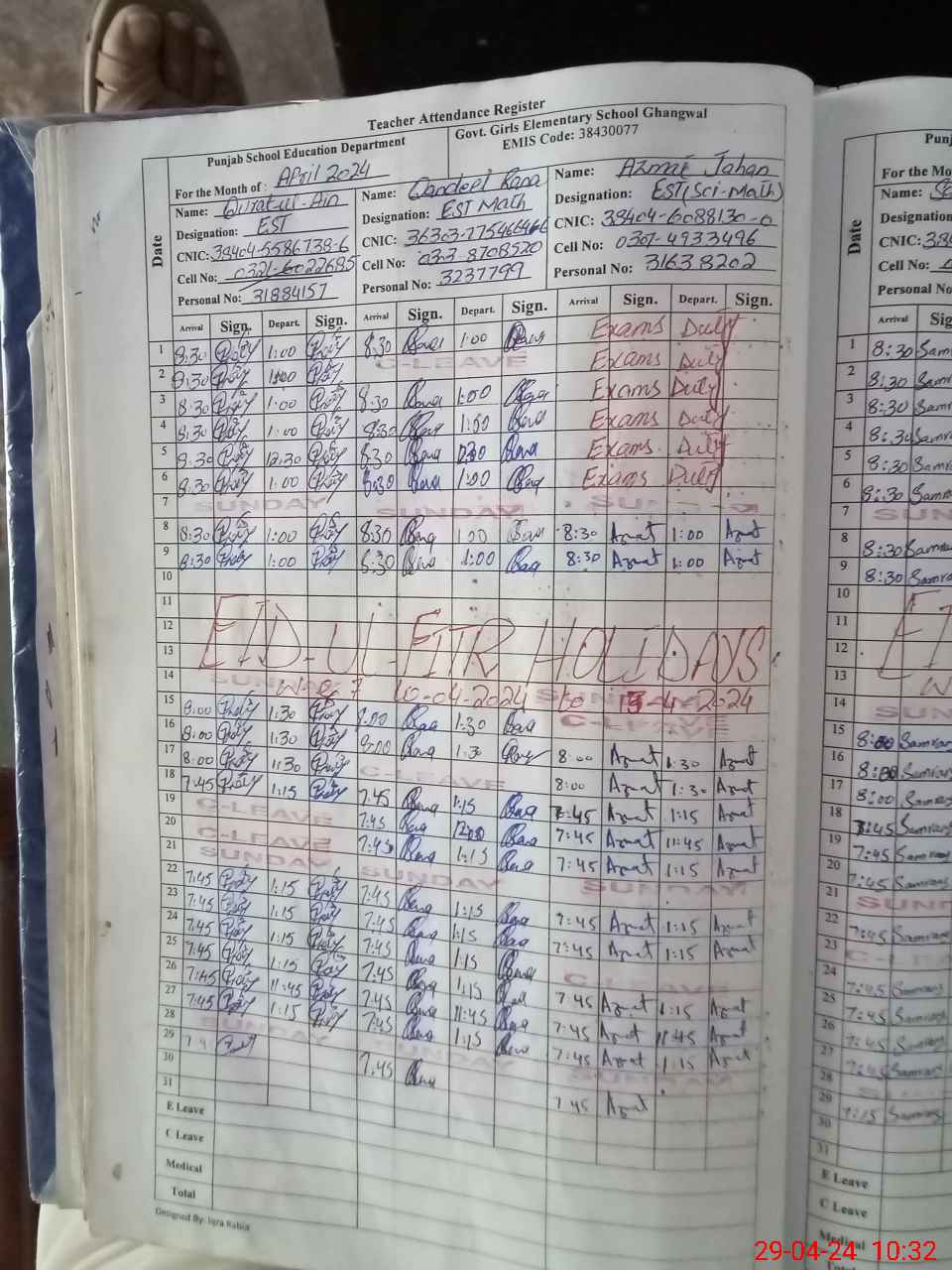 | CNIC | Full Name | Designation | R/C | Absence During Last Calender Month |