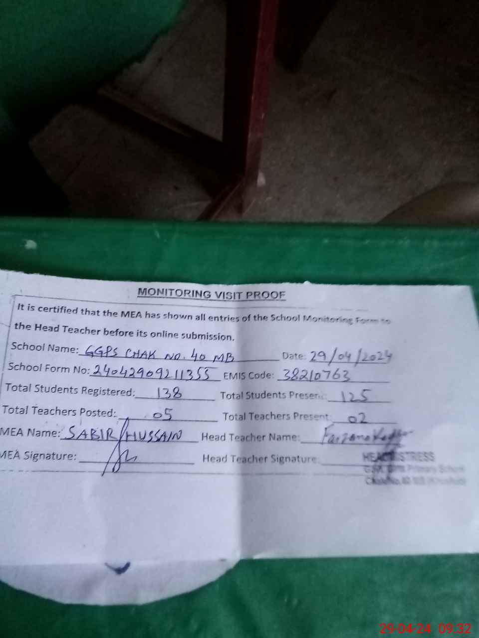 | EMIS Code: 38210763 | Name of School: GGPS CHAK NO. 40 MB | |||