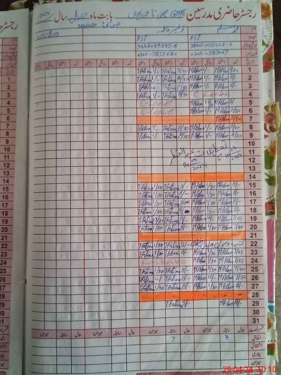 | Name: Mu**** As**** Designation: (School Headmaster's/Headmistress's) P S T Phone/Cell Number: 03**** |