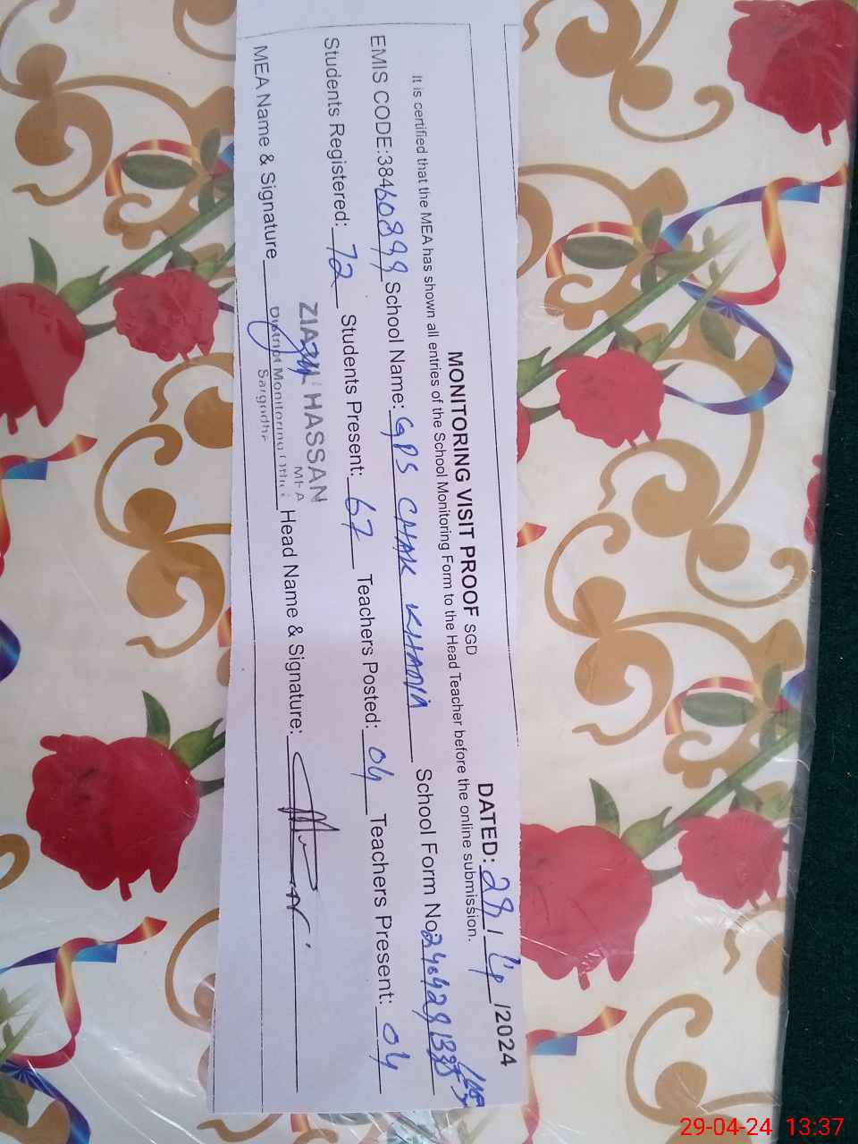 | EMIS Code: 38460899 | Name of School: GPS CHAK KHANA | |||