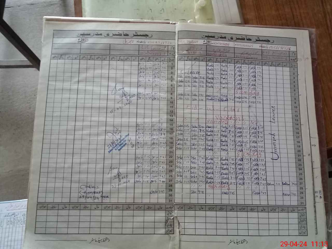 | CNIC | Full Name | Designation | R/C | Absence During Last Calender Month |