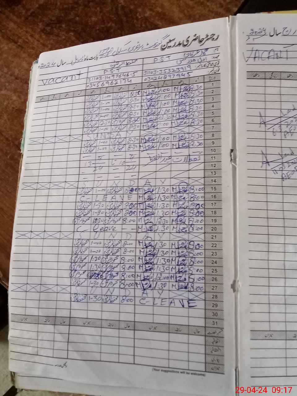 | CNIC | Full Name | Designation | R/C | Absence During Last Calender Month |