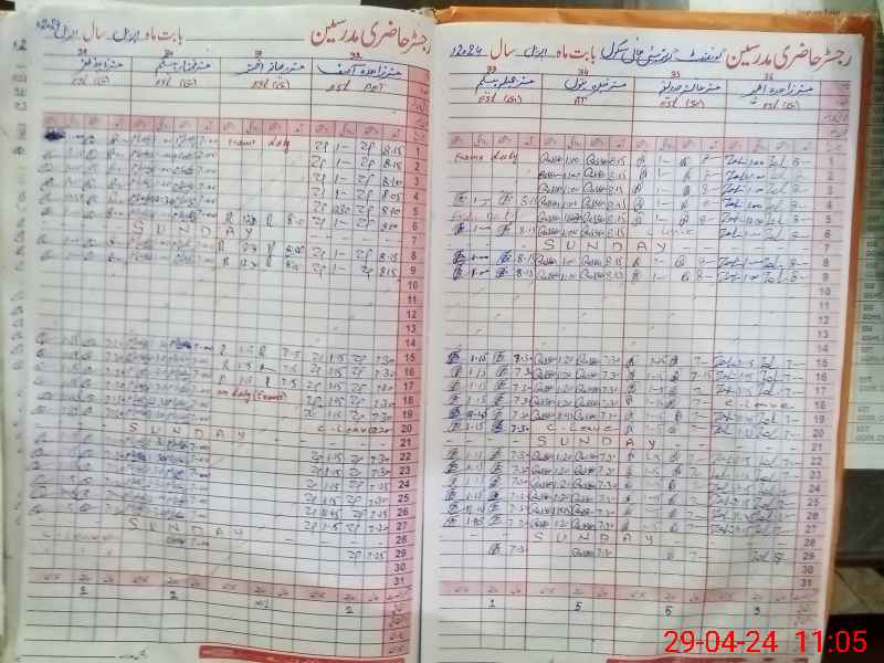 | CNIC | Full Name | Designation | R/C | Absence During Last Calender Month |