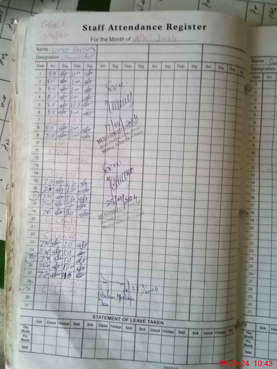| 35**** | Um**** Fa**** | CHOUKIDAR | Regular | 1 | 0 | 0 | 0 | 0 | 0 | 0 | 0 | 1 | Casual |