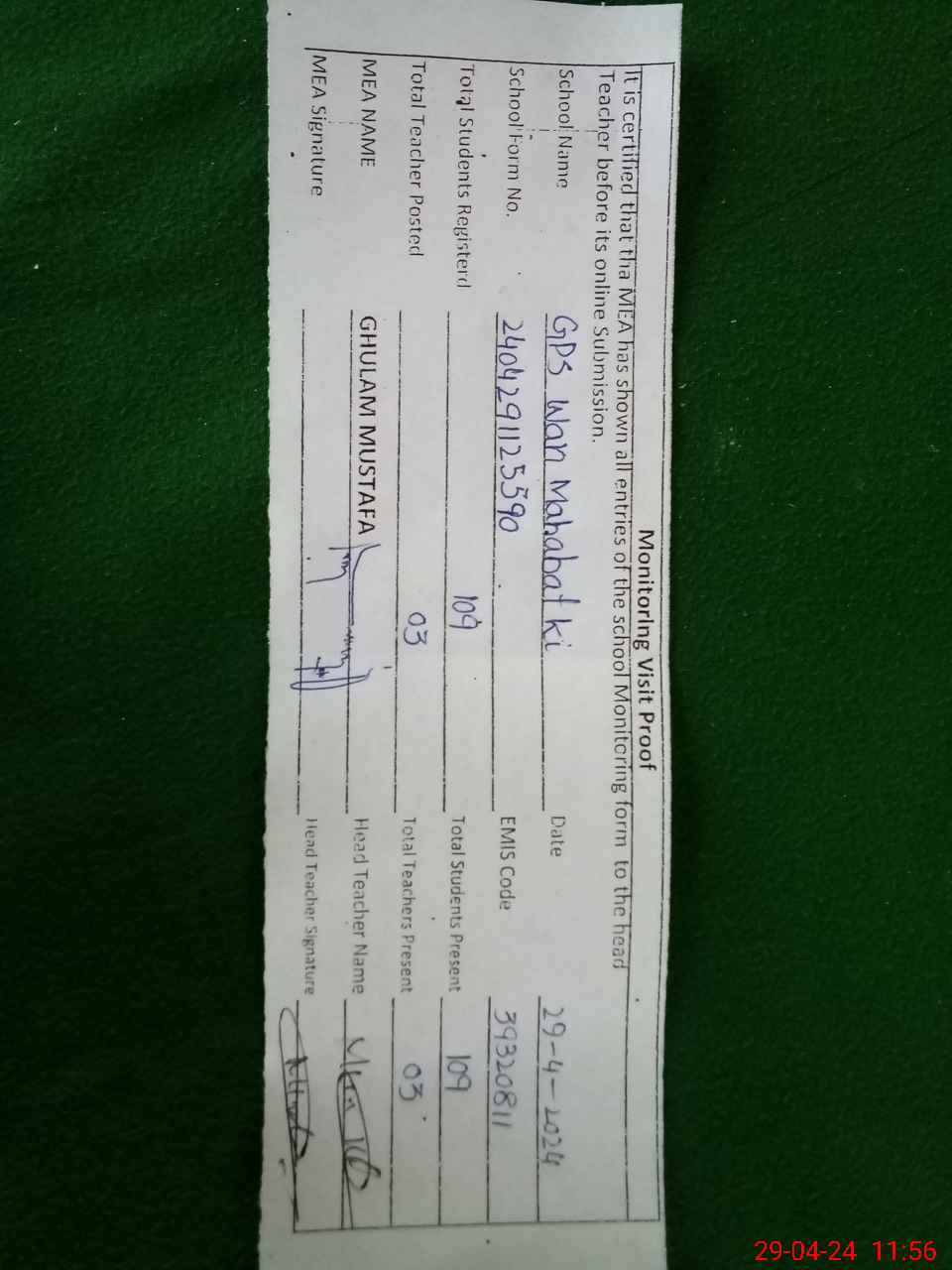 | EMIS Code: 39320811 | Name of School: GPS WAN MAHABAT KI | |||