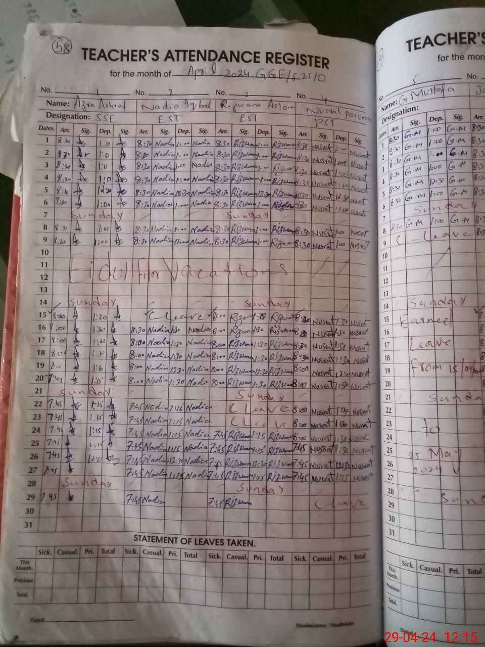 | Leave | Duty | Absent | Maternity | Medical | Ex- Pak |