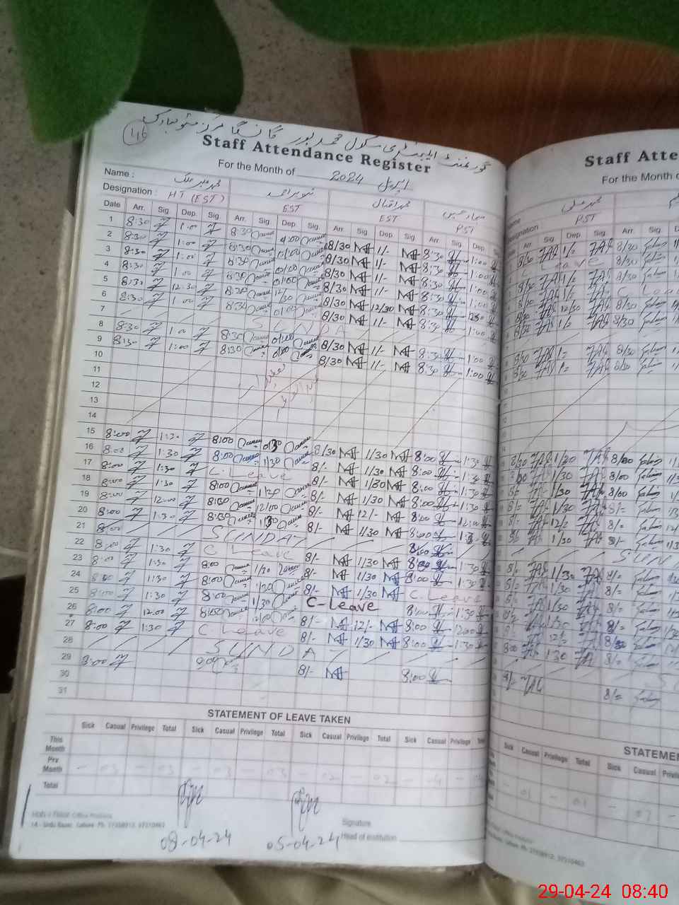 | Name: Mu**** Iq**** Designation: (School Headmaster's/Headmistress's) E S T Phone/Cell Number: 03**** |