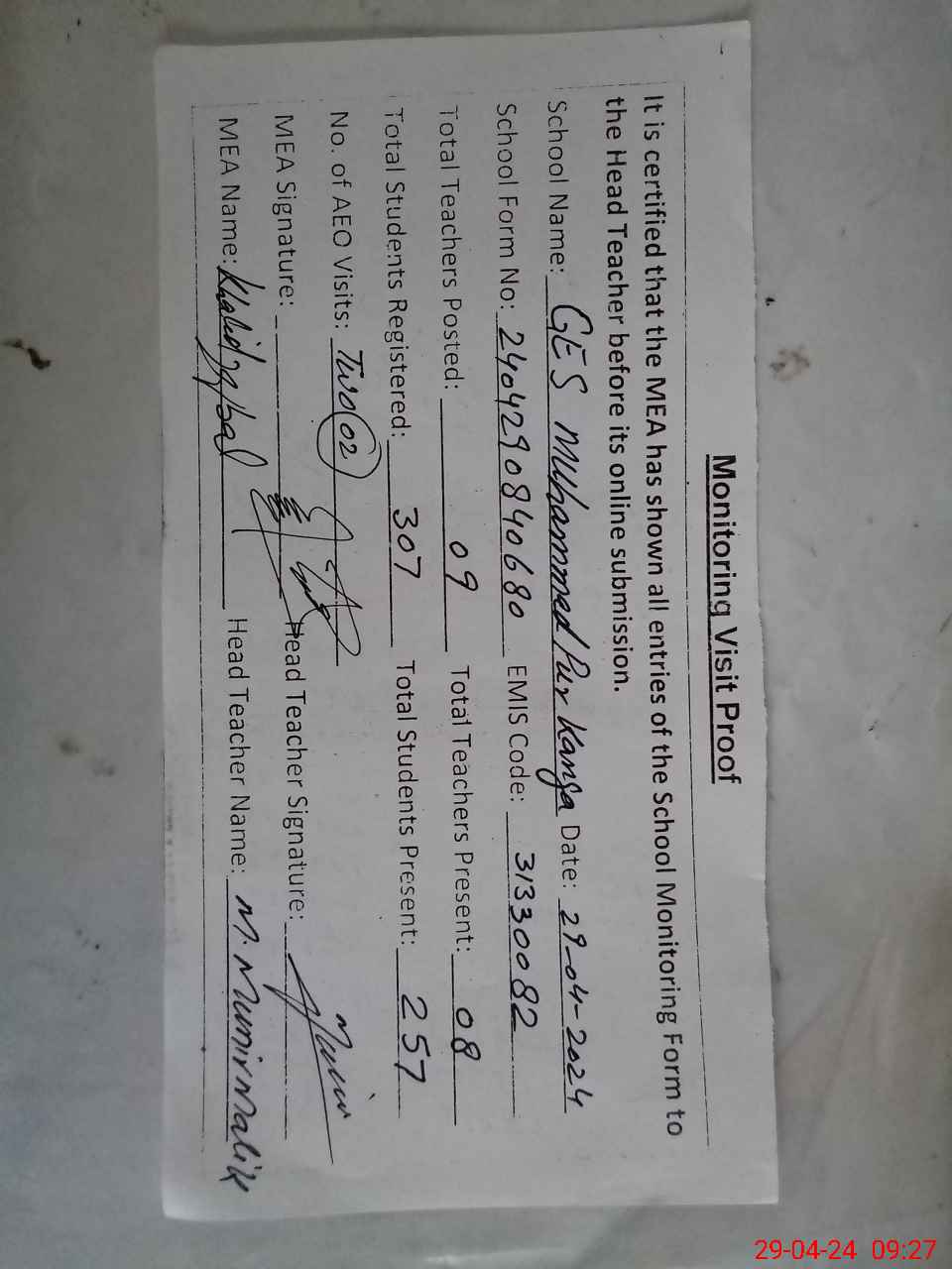 | EMIS Code: 31330082 | Name of School: GES MUHAMMAD PUR GANGA | |||