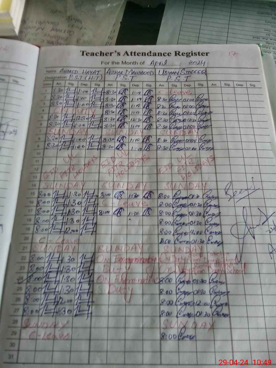 | 37**** | Az**** Ma**** | PST | Regular | 0 | 0 | 0 | 0 | 0 | 0 | 0 | 0 | 0 | Exam Duty |
