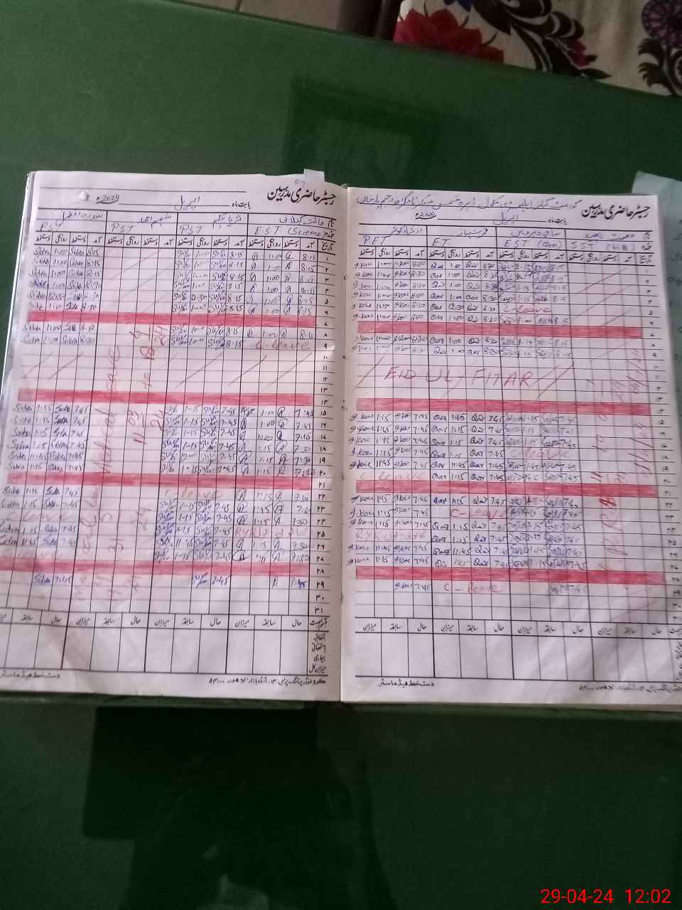 | CNIC | Full Name | Designation | R/C | Absence During Last Calender Month |