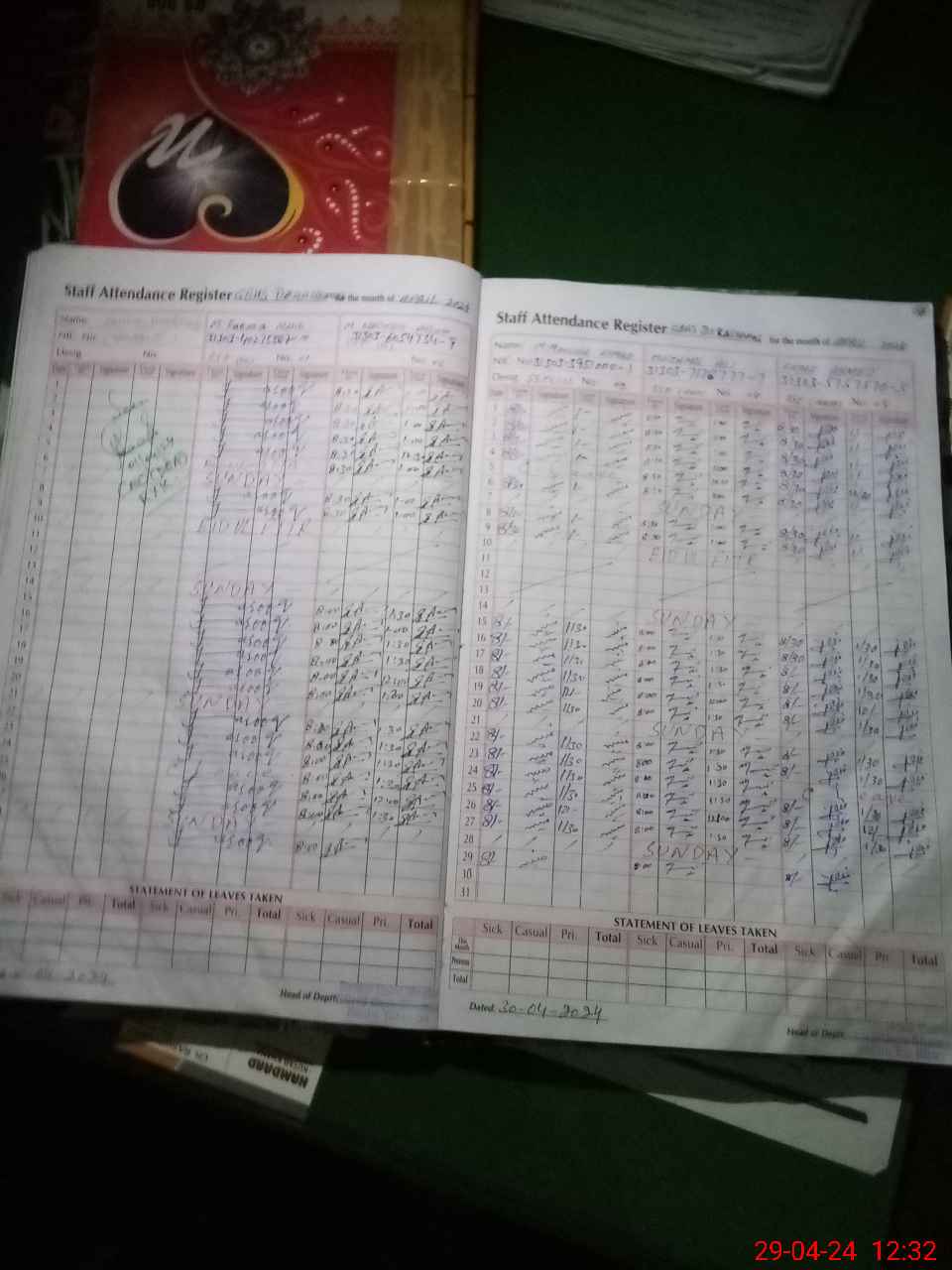 | Leave | Duty | Absent | Maternity | Medical | Ex- Pak |