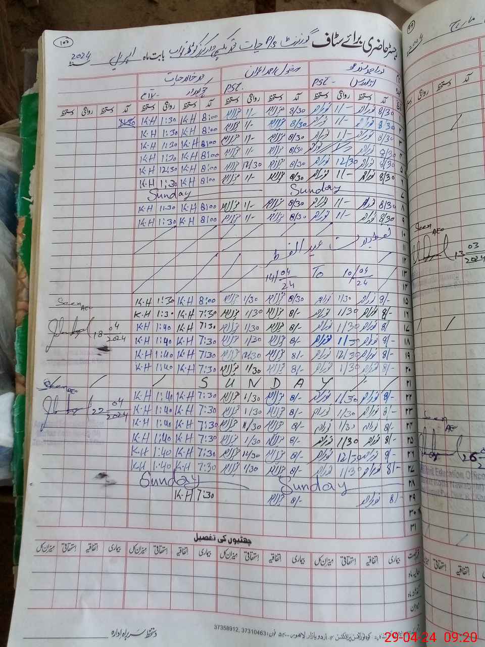| CNIC | Full Name | Designation | R/C | Absence During Last Calender Month |