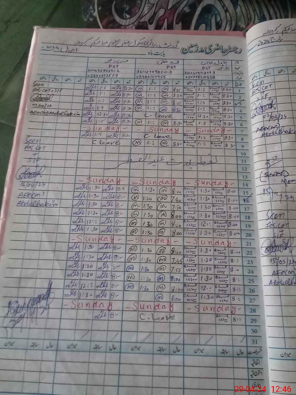 | Name: BH**** KH**** Designation: (School Headmaster's/Headmistress's) PST Phone/Cell Number: 03**** |