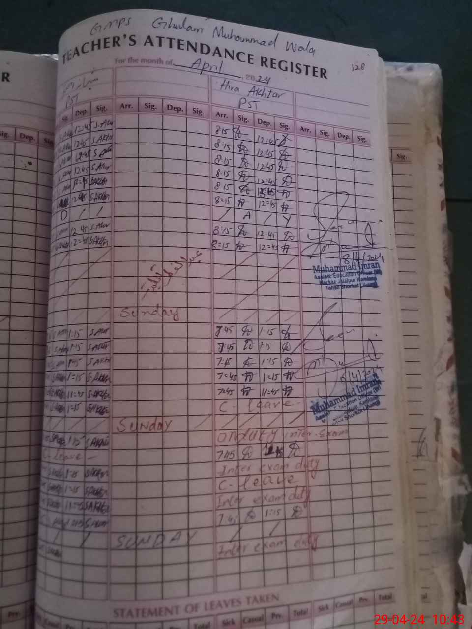 | 33**** | Hi**** Ak**** | 1 | 1 | 0 | 0 | 0 | 0 | 0 | 0 | 0 | 1 | Exam Duty | |
