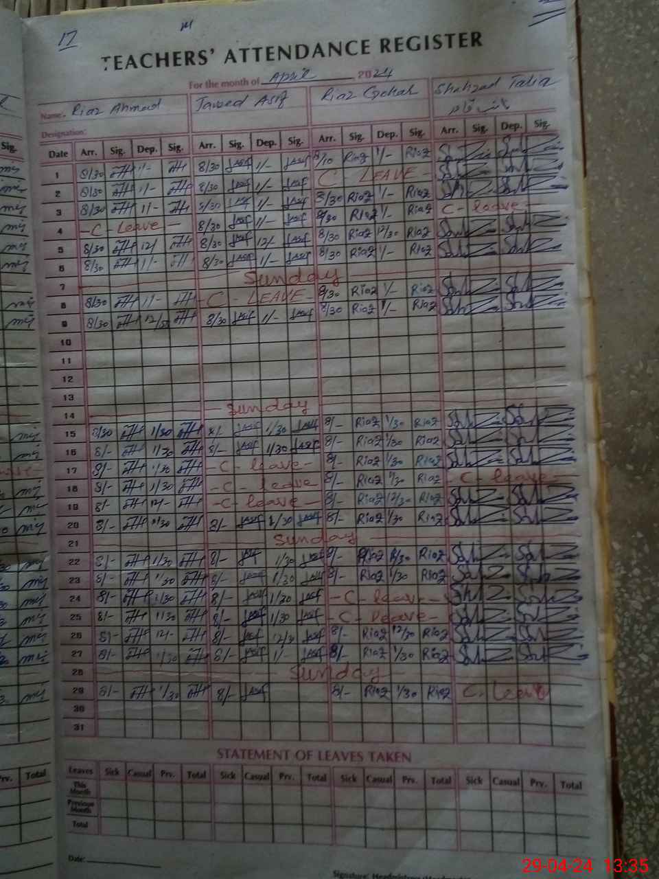 | 33**** | Mu**** Ak**** Za**** | 3 | 1 | 0 | 0 | 0 | 0 | 0 | 0 | 0 | 0 | 0 | Exam Duty |