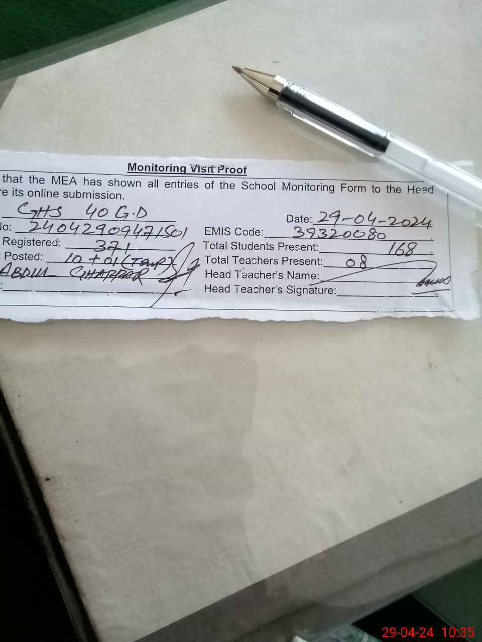 | EMIS Code: 39320080 | Name of School: GHS 40/G.D | |||