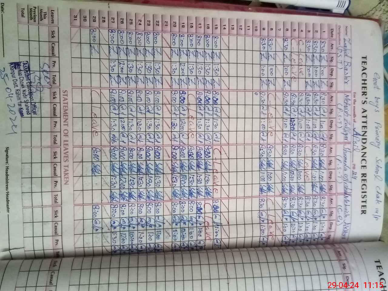 Leave Type | Remarks for today (Leave,Training, Exam,Absent,Late, Other duty) |