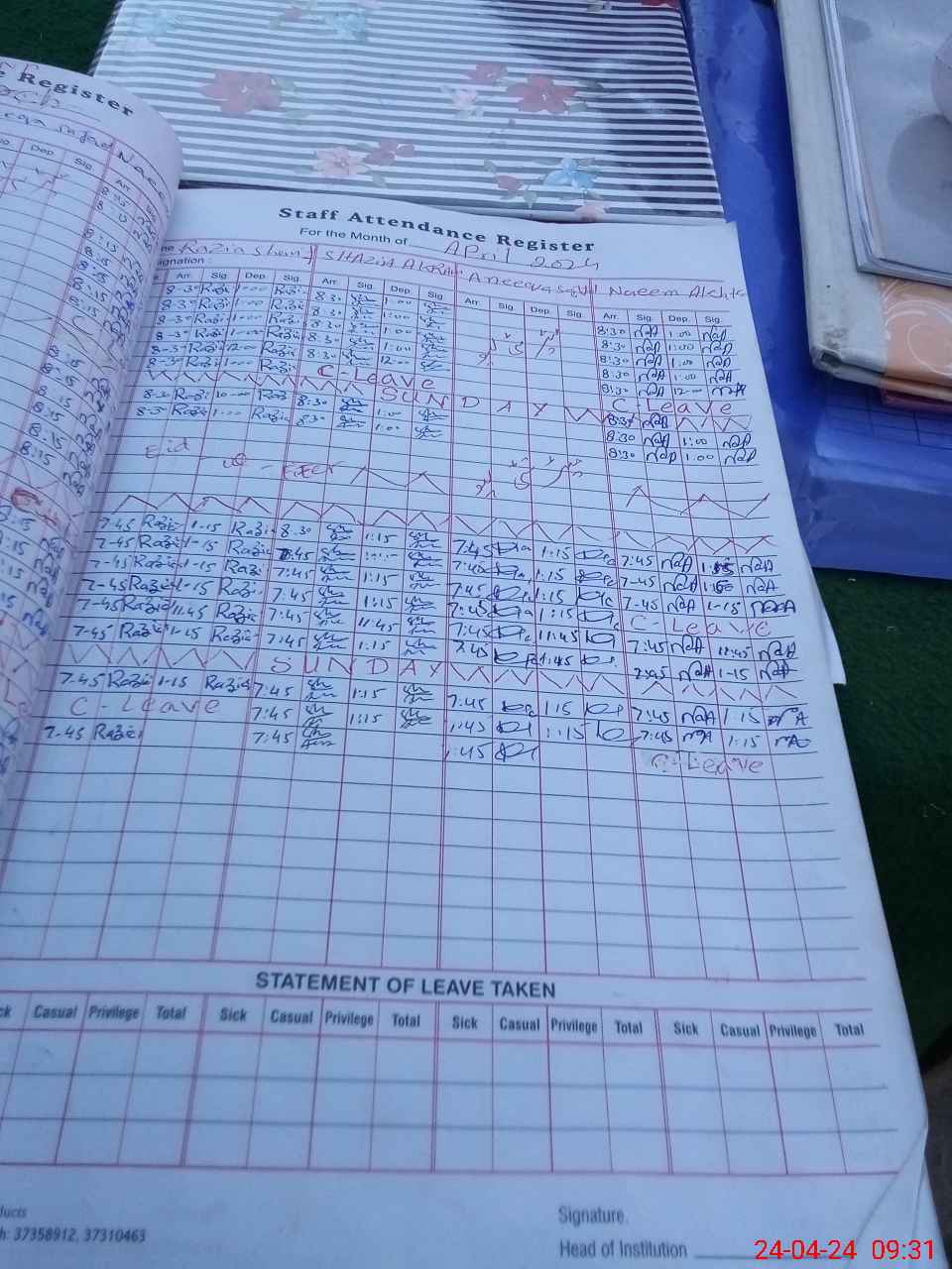 | Leave | Duty | Absent | Maternity | Medical | Ex- Pak |