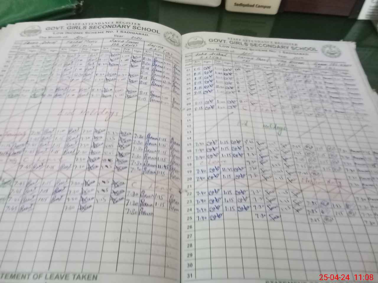 | Leave | Duty | Absent | Maternity | Medical | Ex- Pak |