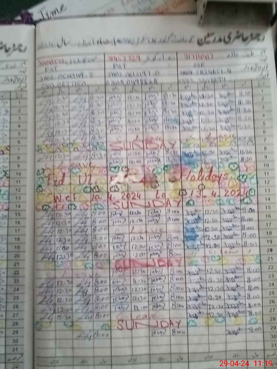 | CNIC | Full Name | Designation | R/C | Absence During Last Calender Month |