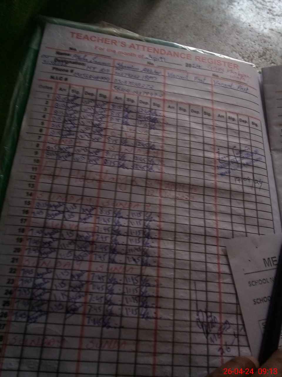 | Name: Ay**** Sa**** Designation: (School Headmaster's/Headmistress's) PST/PTC/JV Phone/Cell Number: 03**** |