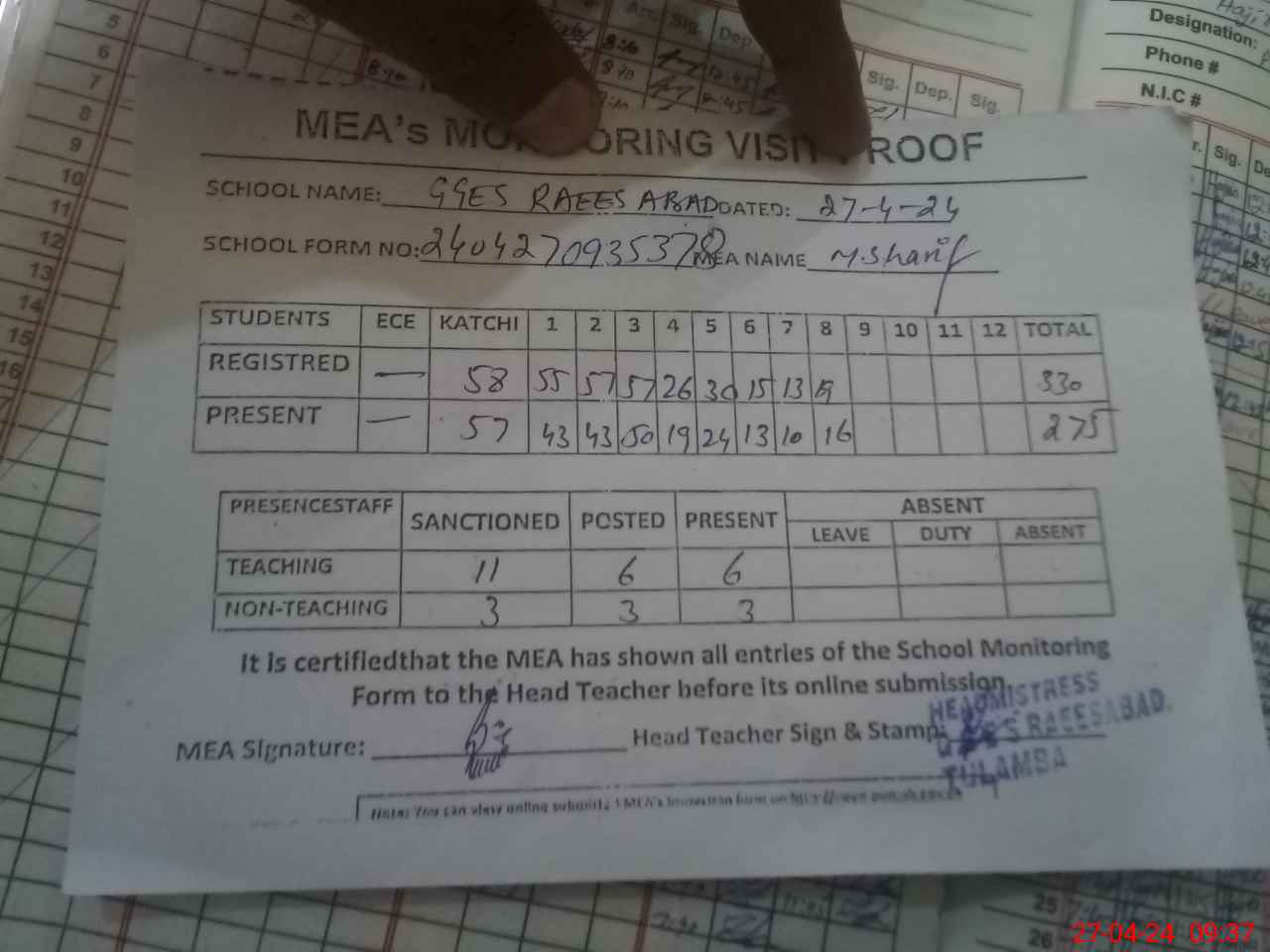 | EMIS Code: 36430112 | Name of School: GGES RAEES ABAD, TULAMBA | |||