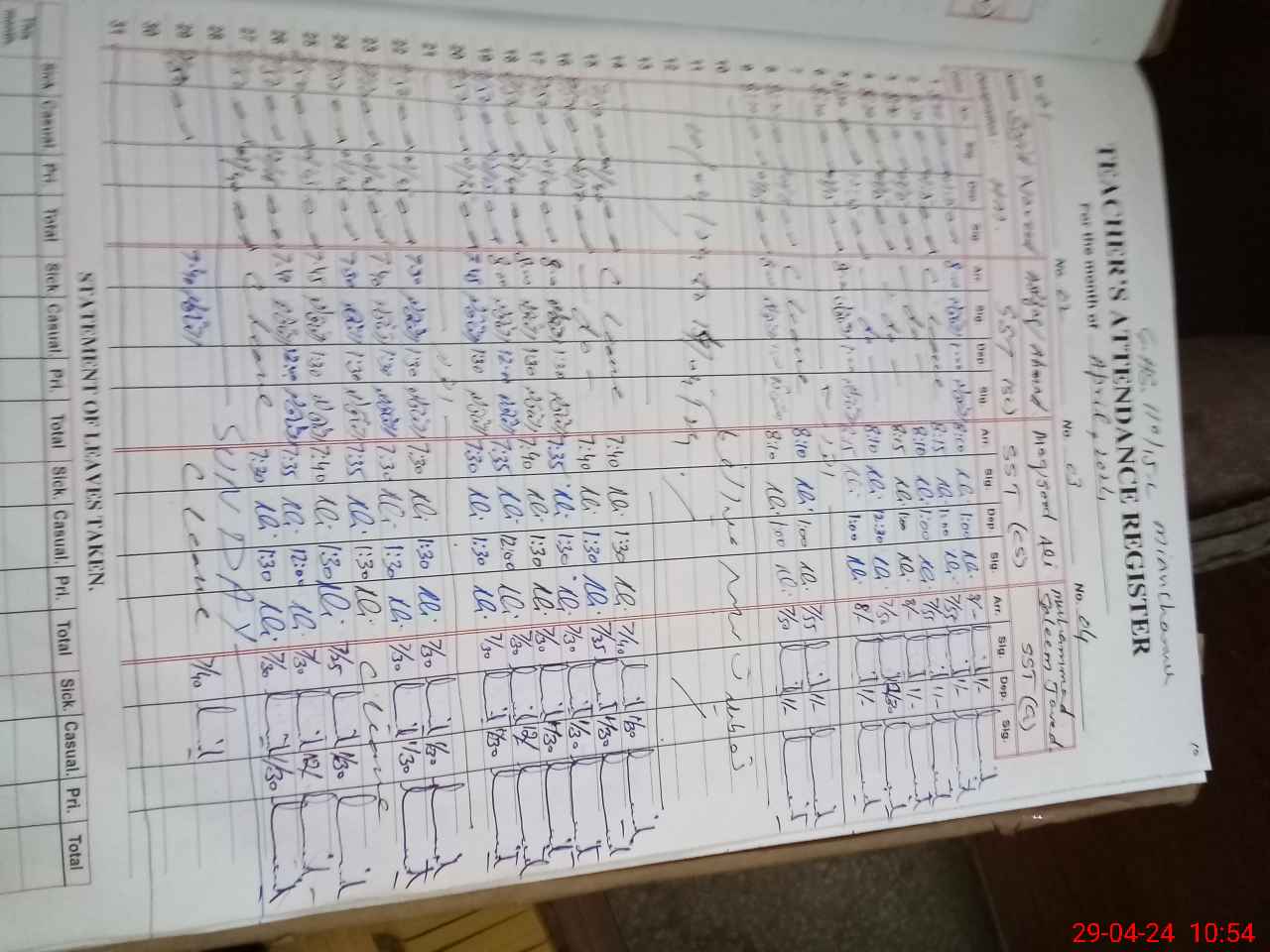 | CNIC | Full Name | Designation | R/C | Absence During Last Calender Month |