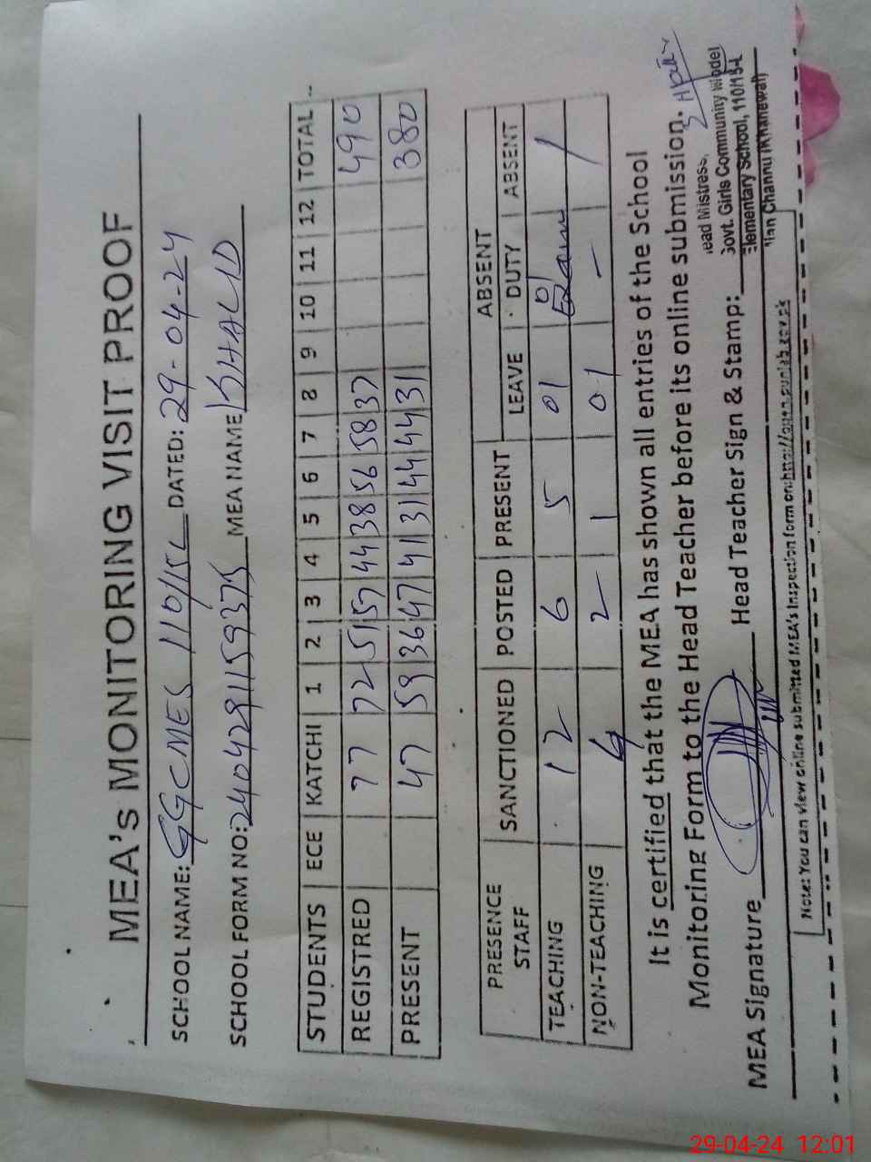 | Monitoring Date: 29-04-2024 | Start Time: 29-04-2024 11:31 AM | End Time: 29-04-2024 12:03 PM | Name of MEA: Kh**** Me**** | |