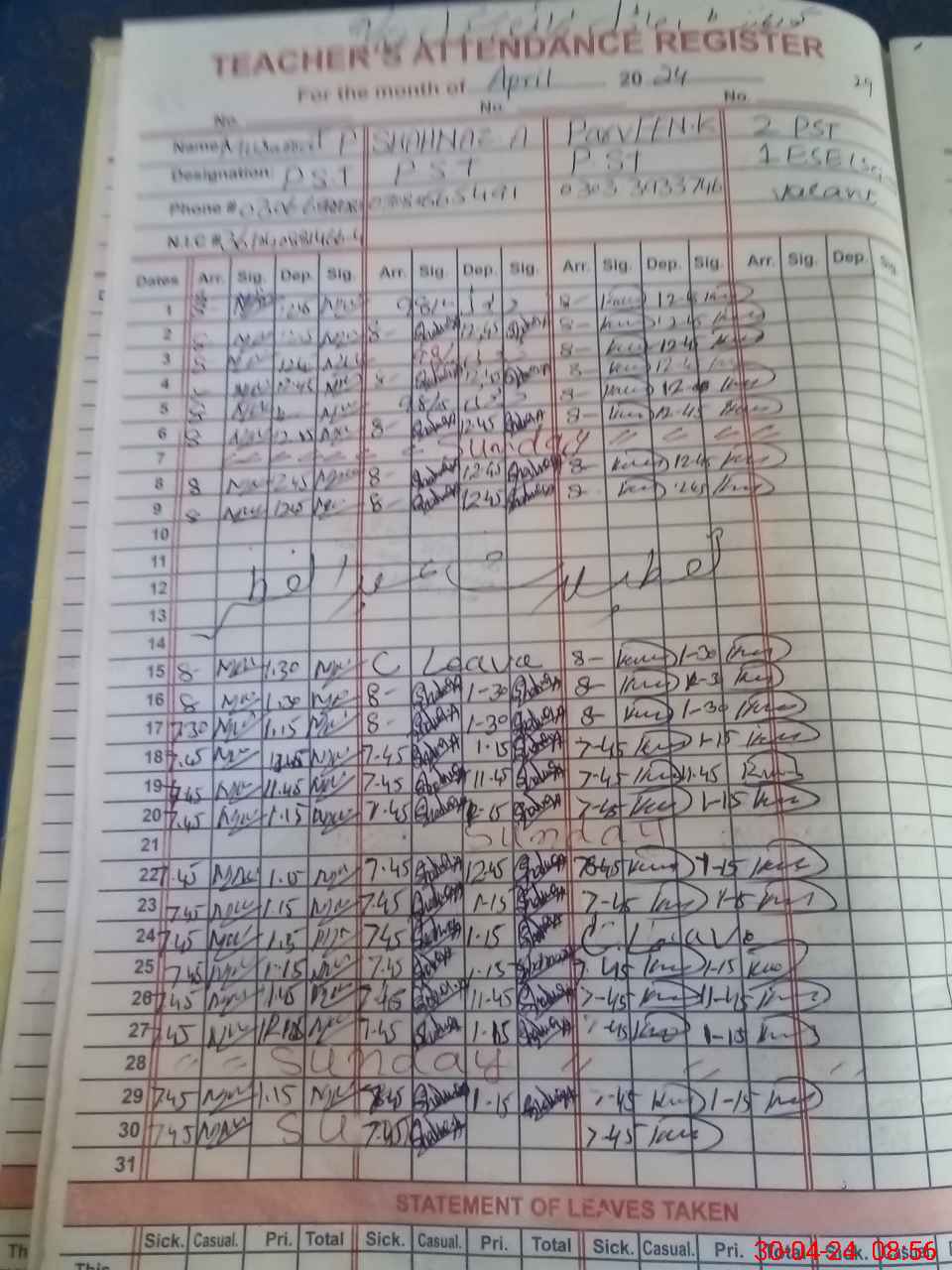 | Name: MU**** PA**** Designation: (School Headmaster's/Headmistress's) PST Phone/Cell Number: 03**** |
