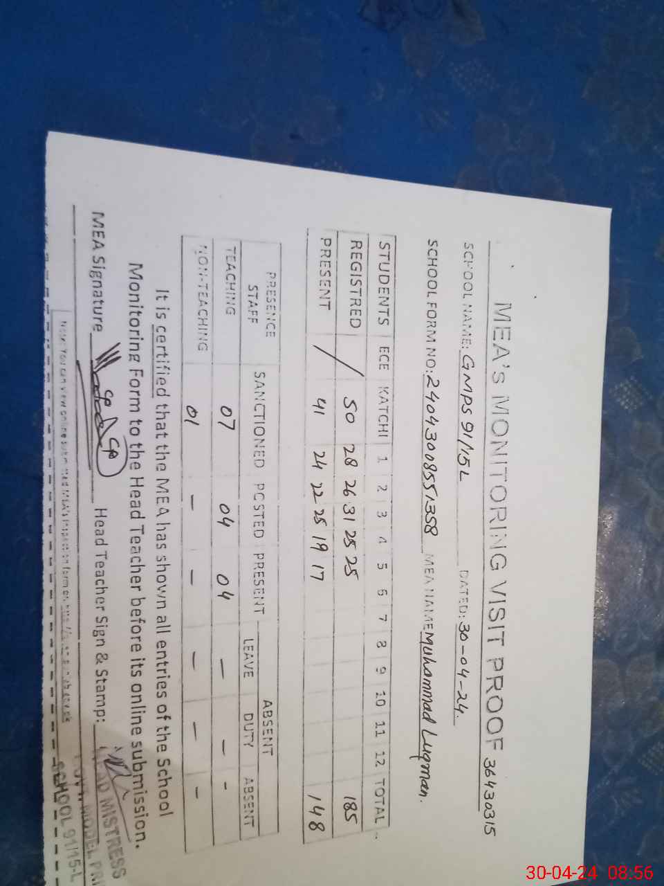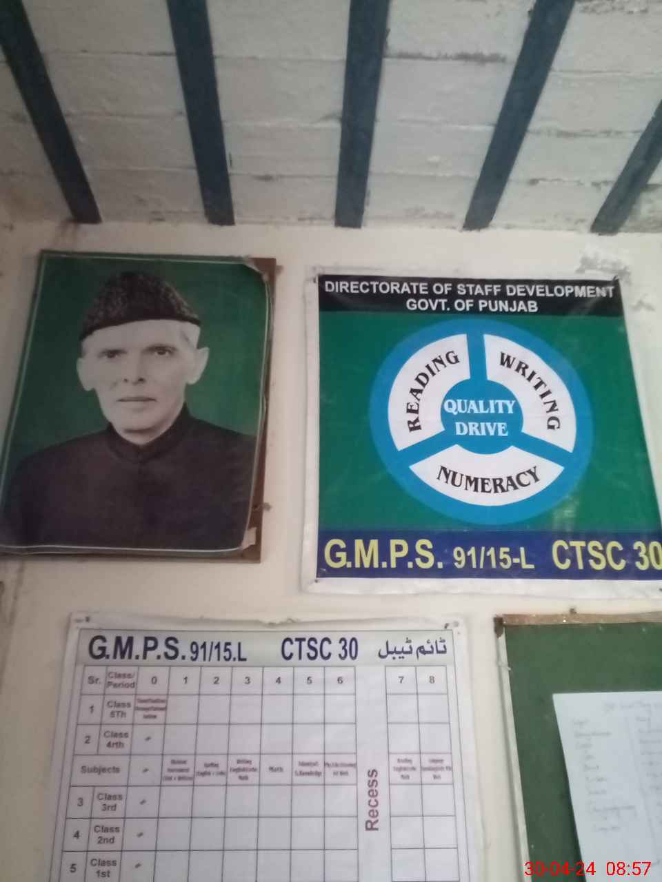 | EMIS Code: 36430315 | Name of School: GMPS 91/15-L, MIAN CHANNU | |||