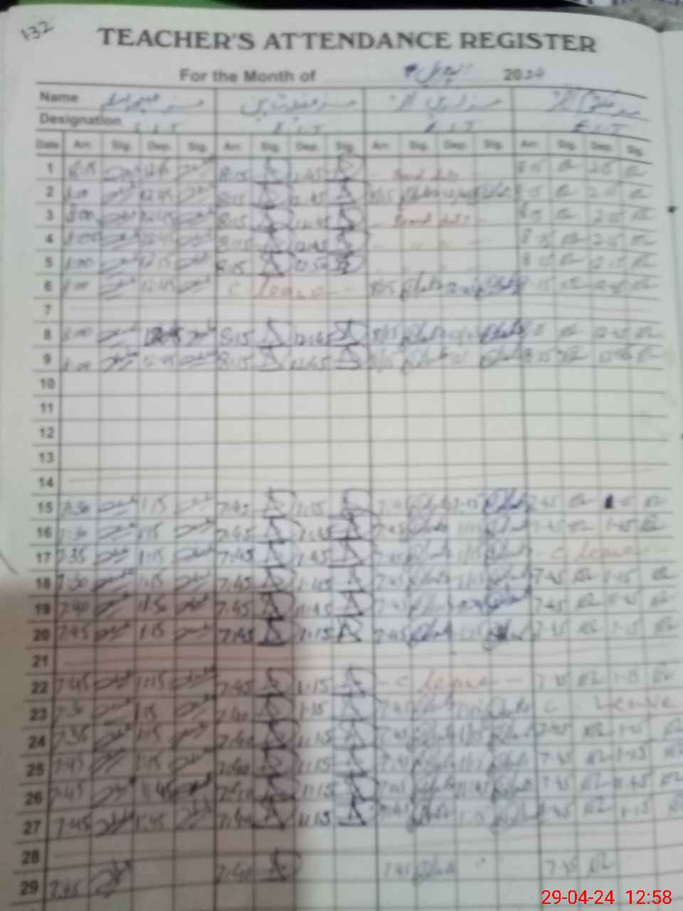 | CNIC | Full Name | Designation | R/C | Absence During Last Calender Month |
