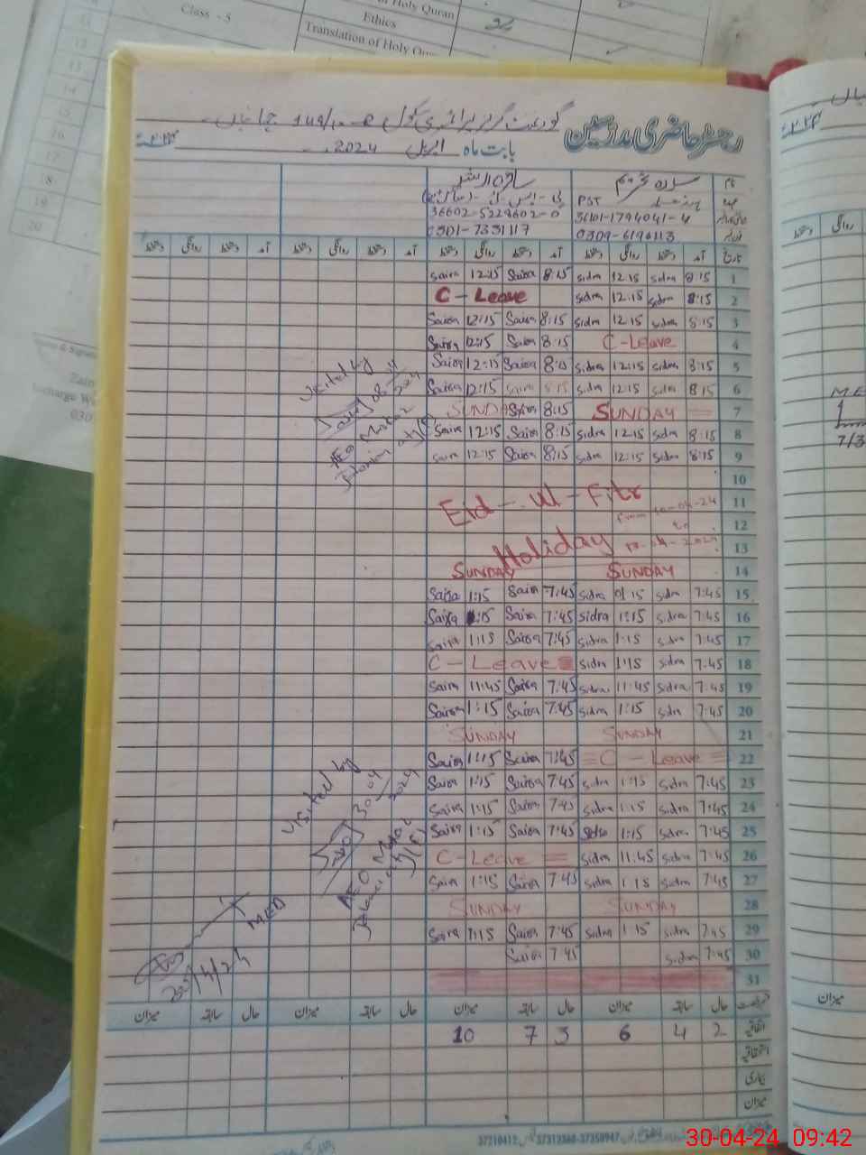 | Name: Qa**** Unni**** Sa**** Designation: (School Headmaster's/Headmistress's) PST Phone/Cell Number: 03**** |