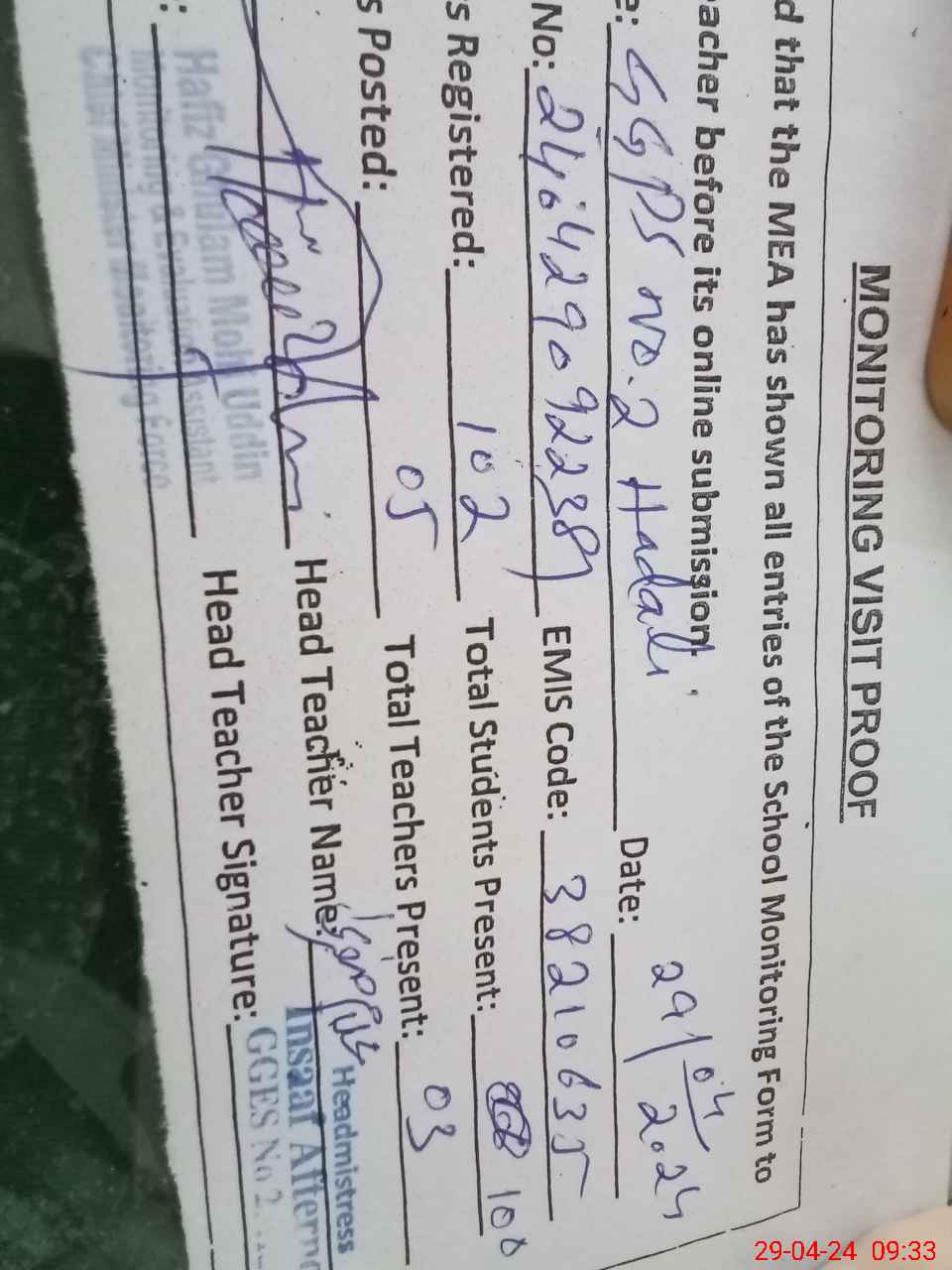 | EMIS Code: 38210635 | Name of School: GGPS NO. 2 HADALI | |||