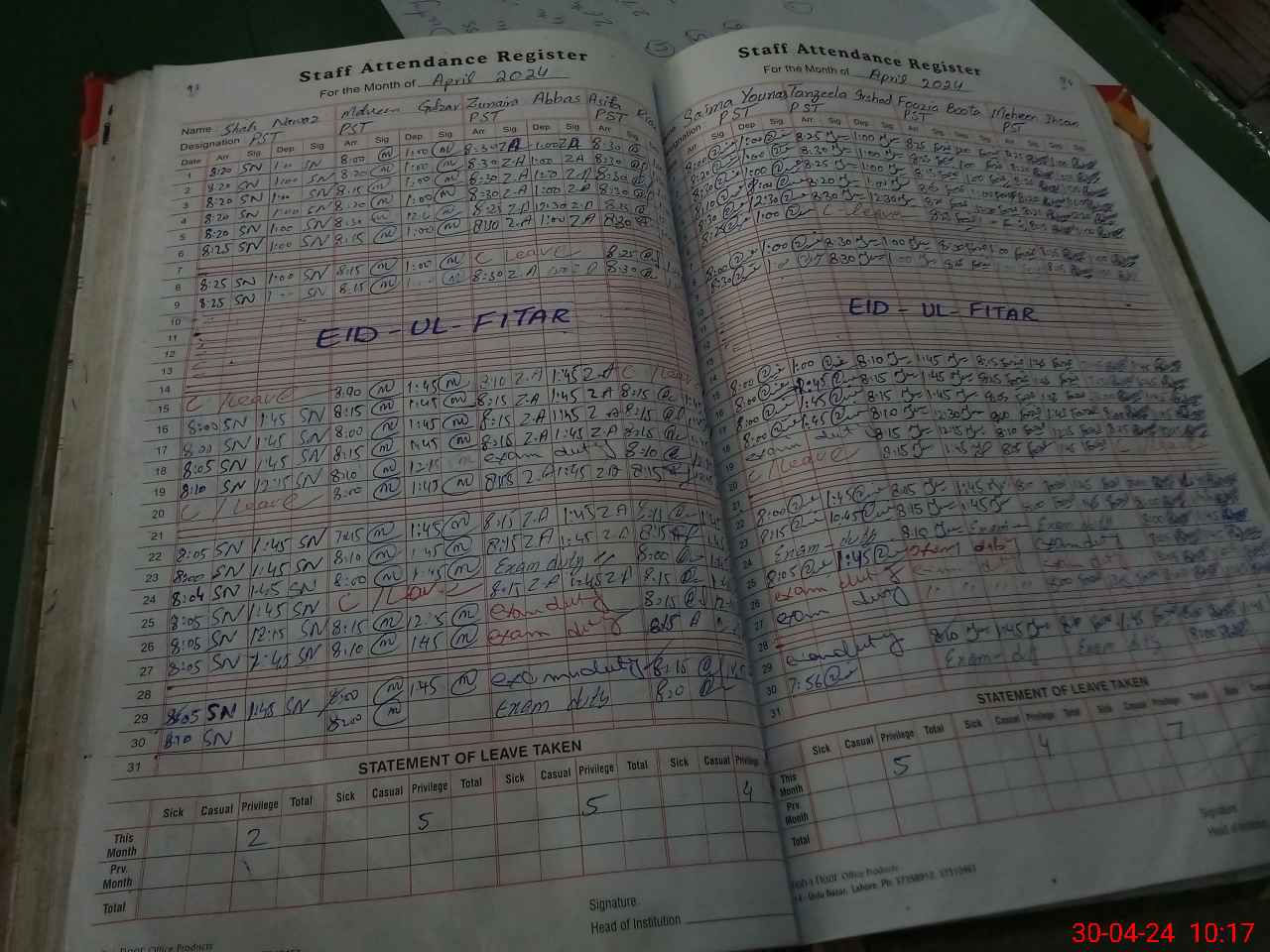 | 35**** | Zu**** Ab**** | PST | Regular | 0 | 0 | 0 | 0 | 0 | 0 | 0 | 0 | 0 | Exam Duty |