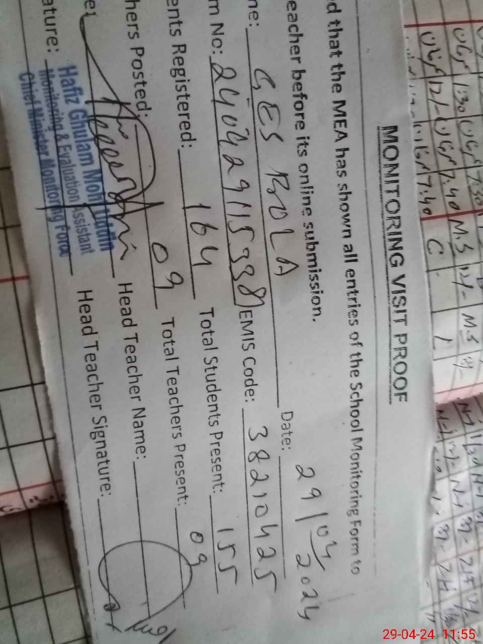 | Certified that this School was Inspected by the Undersigned MEA/DMO Today and the Information Stated Above is as Per Record. | |||||