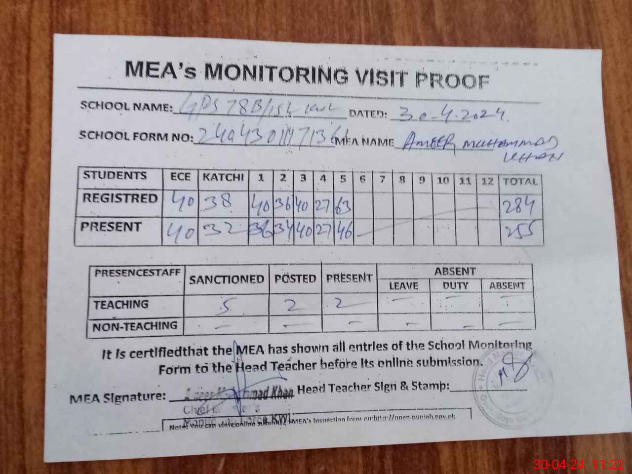 | EMIS Code: 36420663 | Name of School: GPS 78-B/15-L, KHANEWAL | |||