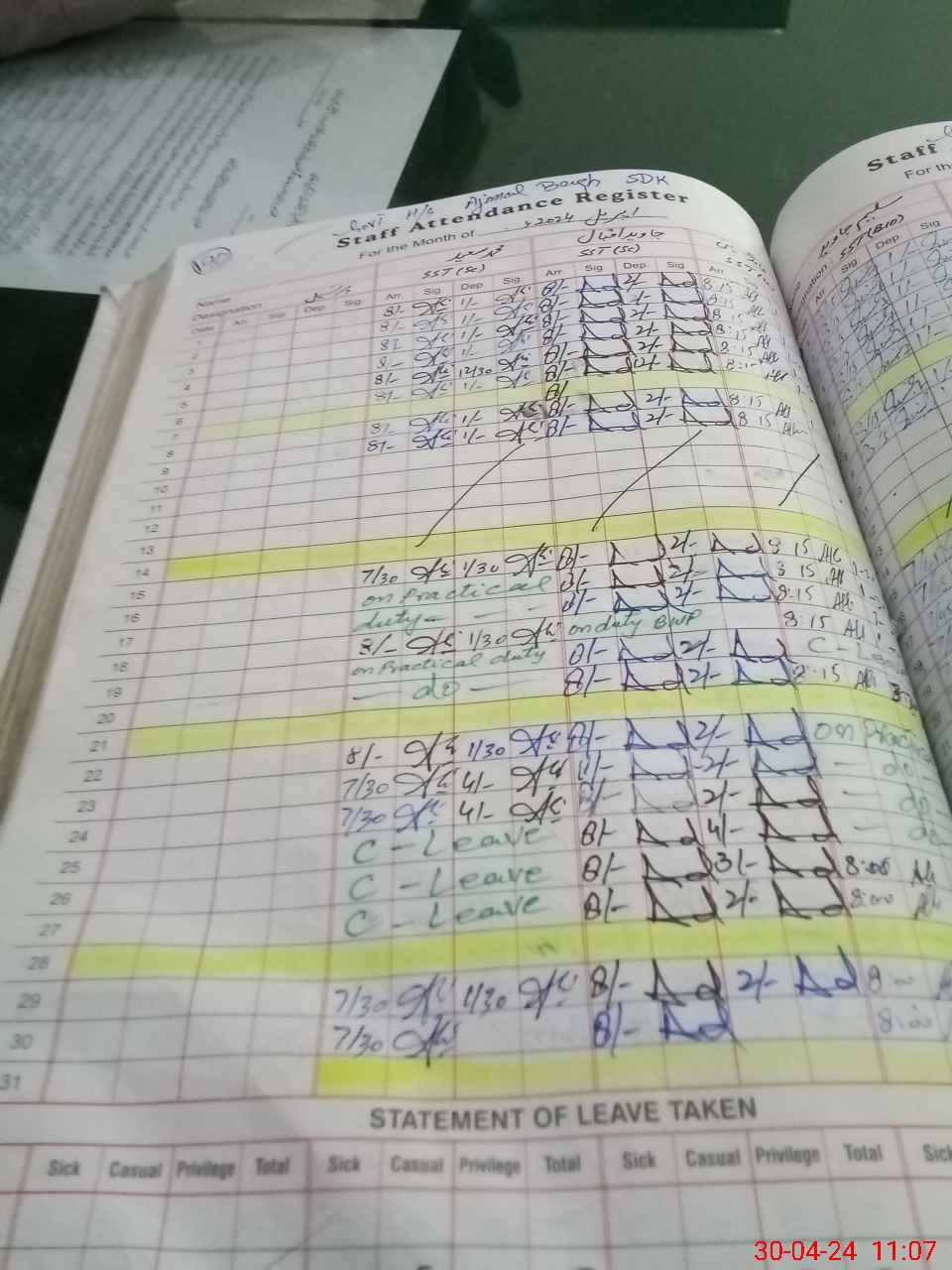 | Leave | Duty | Absent | Maternity | Medical | Ex- Pak |