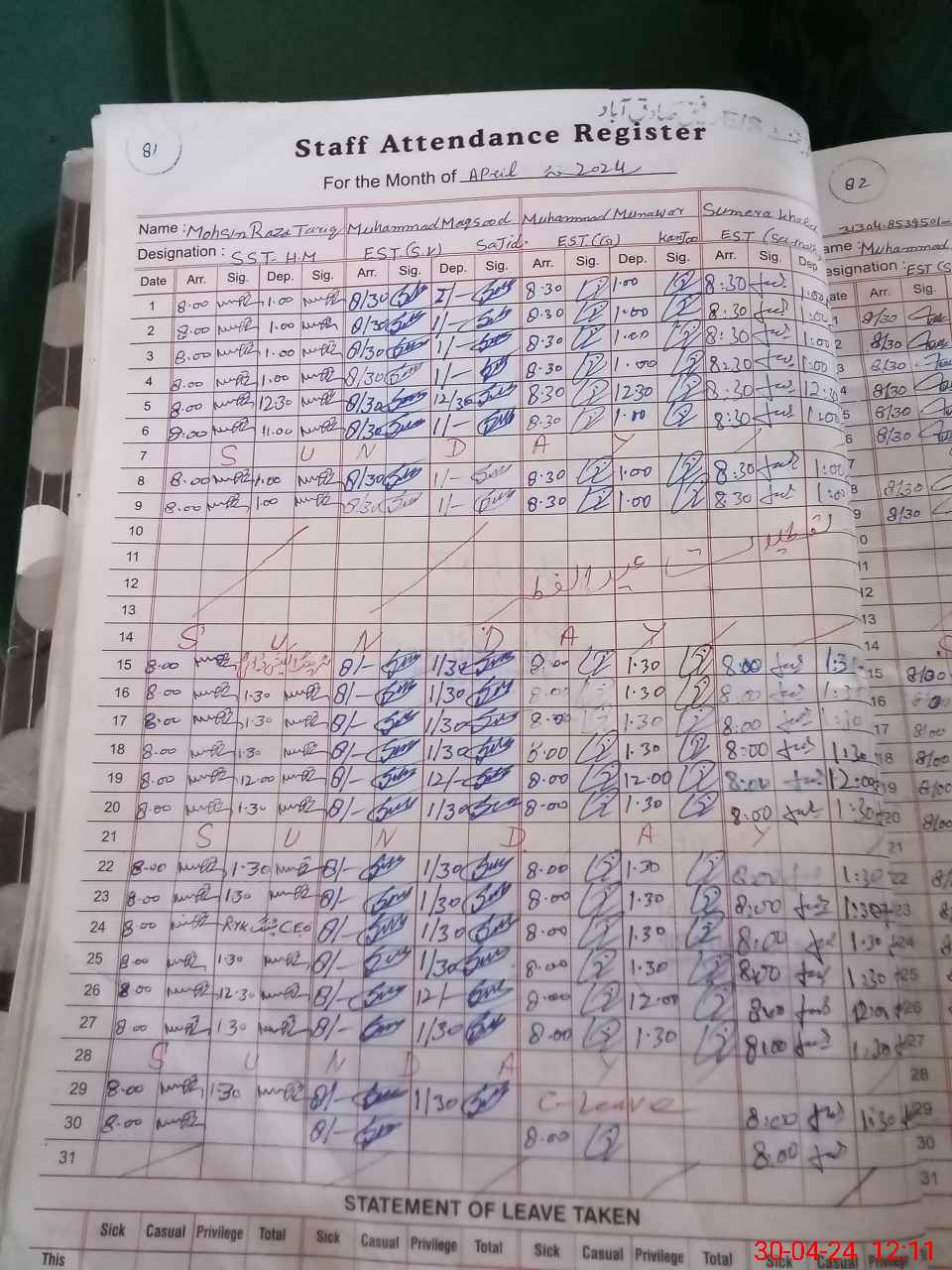 | 31**** | Na**** UDi**** | CHOWKIDAR | Contract | 0 | 0 | 31 | 0 | 0 | 0 | 0 | 0 | 0 | Absent (Un-Authorized) |