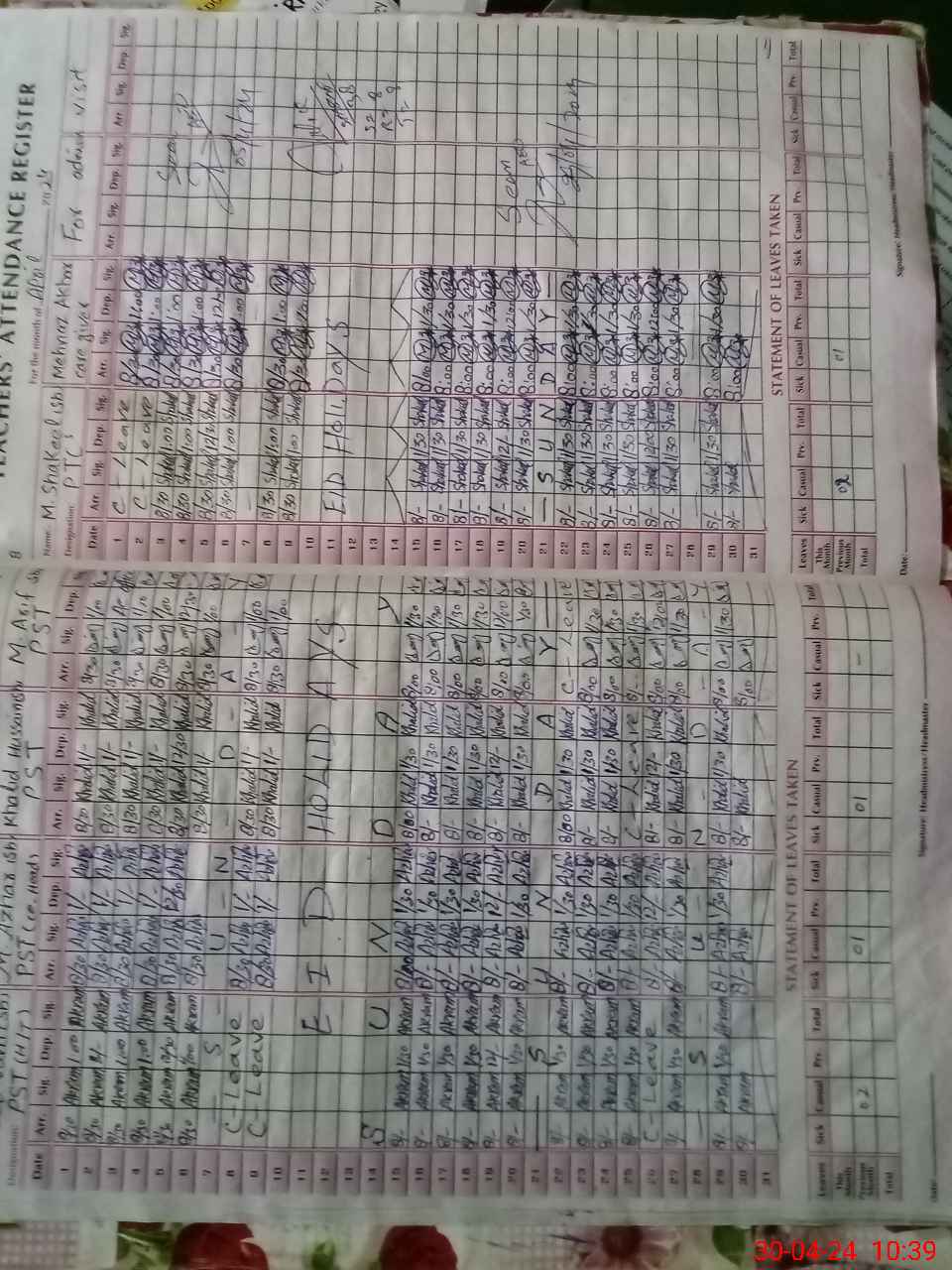| Leave | Duty | Absent | Maternity | Medical | Ex- Pak |