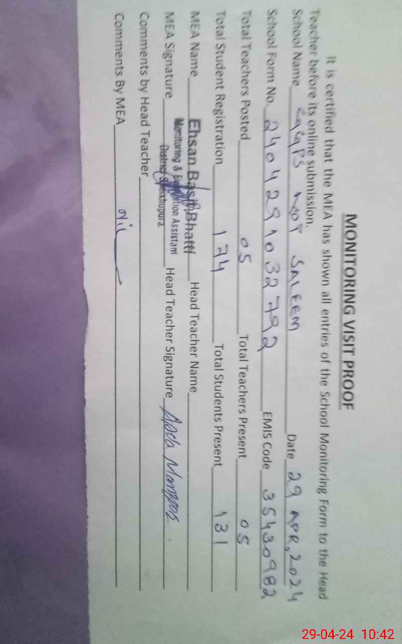 | EMIS Code: 35430982 | Name of School: GGPS KOT SALEEM | |||