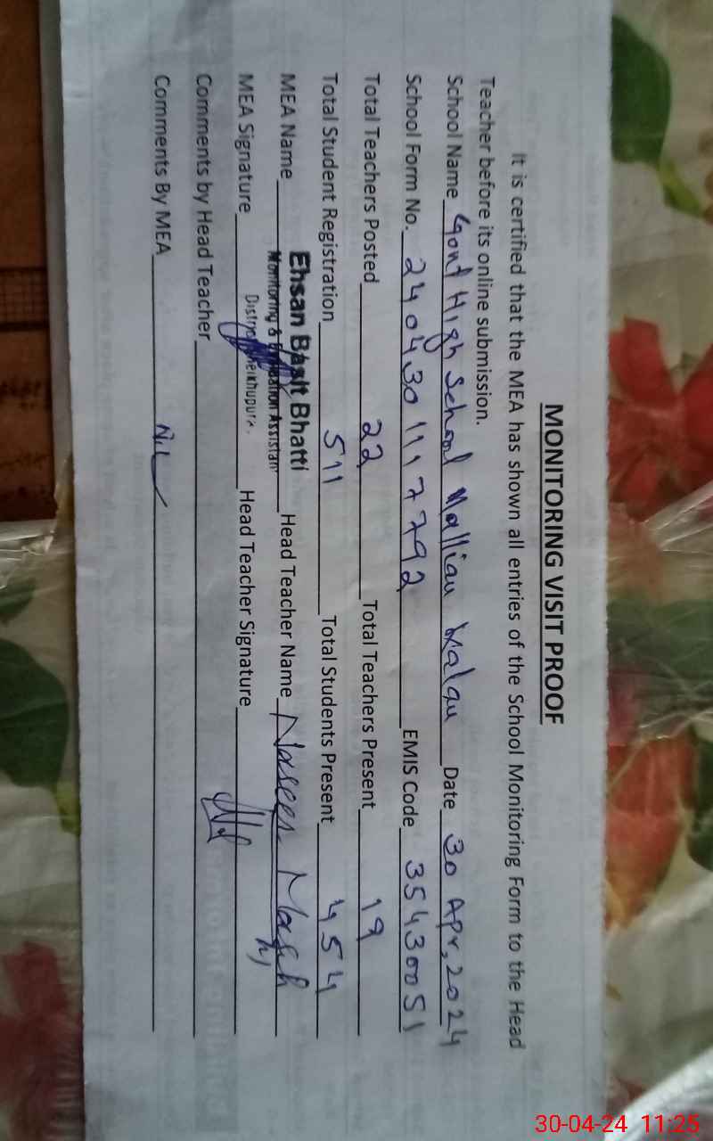 | EMIS Code: 35430051 | Name of School: GHS MALLIAN KALAN | |||