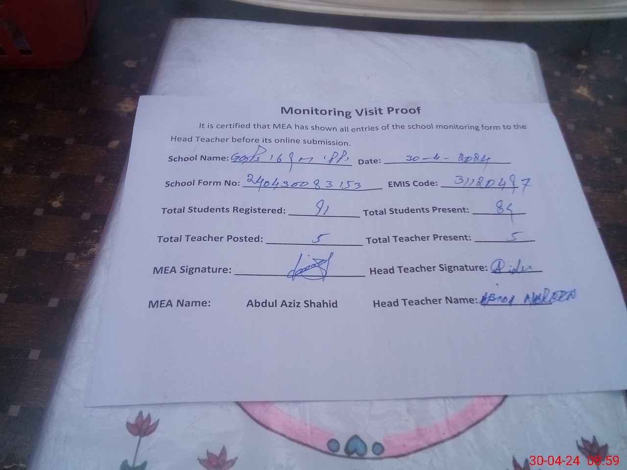| EMIS Code: 31120497 | Name of School: GGPS 169/M BASTI P.P | |||