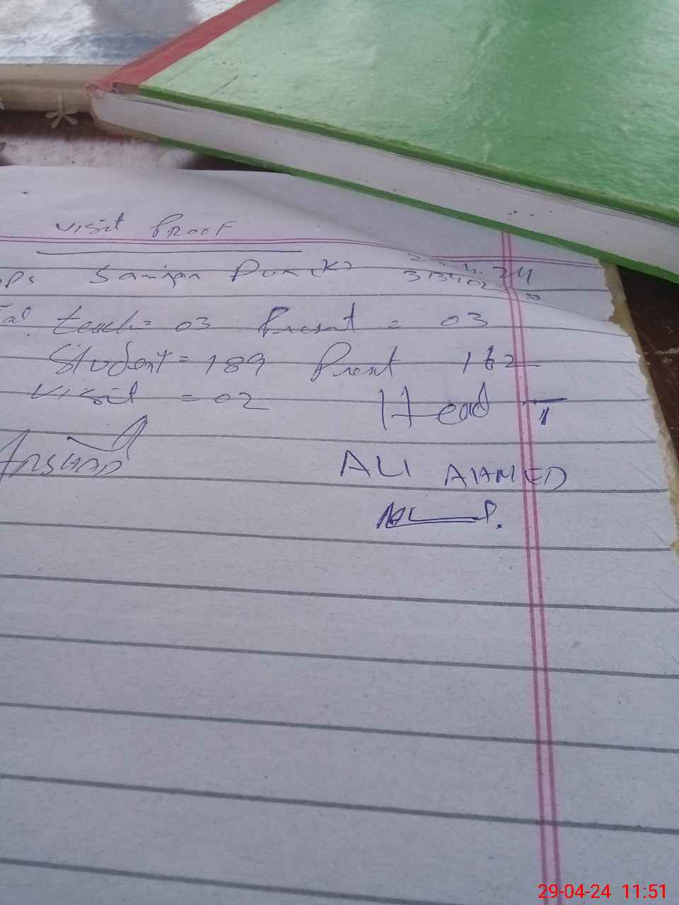 | Attendance Register | Head Teacher | MEA with School | Visit Proof |