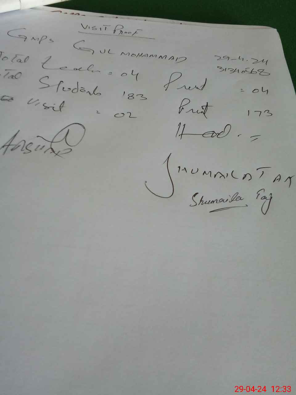 | EMIS Code: 31340568 | Name of School: GMPS GUL MUHAMMAD | |||